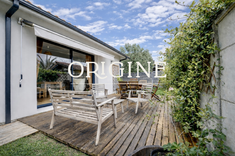 LA TESTE DE BUCH - A 5 minutes du centre-ville, maison récente (2022) de plain pied offrant un salon avec une cuisine ouverte, une buanderie, une salle d'eau, un WC séparé, deux chambres avec placards. climatisation réversible. Une terrasse exposition sud. Terrain arboré d'environ 410 m2 avec un abri de jardin. Possibilité de garer deux véhicules. Aucun travaux à prévoir, sous garantie décénale. DPE B. Ce bien est proposé par l'agence ORIGINE IMMOBILIER au prix de 375 000 euros, dont 4% d'honoraires TTC à la charge du vendeur. Les informations sur les risques auxquels ce bien est exposé sont disponibles sur le site Géorisques : www.georisques.gouv.fr. Pour plus d'informations ou pour prendre rendez-vous, merci de contacter Julia Laplaud au 06 80 68 98 45 ou par e-mail jlaplaud@origine-immobilier.com. RCS Bordeaux 904 543 618