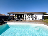 EXCLUSIVITE - SALLES - Villa récente de 2019, au calme et proche de toutes commodités. Composée d'une entrée, pièce de vie avec une cuisine ouverte aménagée et équipée, d'un cellier, d'un bureau, d'une suite parentale avec salle d'eau et dressing, de deux chambres avec placards muraux, salle d'eau et d'un WC indépendant. Un garage de 20 m² ainsi que d'une grande terrasse de 60 m² dont une partie couverte de 26 m2 avec jacuzzi. Maison aux prestations de qualité, équipée de volets roulants électriques avec commande centralisée, chauffage par pompe à chaleur et poêle à bois de 12 KW, ainsi que des panneaux photovoltaïques. La piscine 7.50 x 3.50 au brome dispose d'un abri. Le tout sur un terrain de 1050 m² entièrement clôturé. Parking 4 places, abris de jardin environ 20 m2. Normes RT 2012 encore sous garantie décénnale. Ce bien est proposé par l'agence ORIGINE IMMOBILIER au prix de 529 000 euros, dont 4 % d'honoraires TTC à la charge du vendeur. Les informations sur les risques auxquels ce bien est exposé sont disponibles sur le site Géorisques : www.georisques.gouv.fr. Pour plus d'informations ou pour prendre rendez-vous, merci de contacter Thomas Cahane au 06 98 23 47 30 ou par e-mail tcahane@origine-immobilier.com. RCS Bordeaux 904 543 618